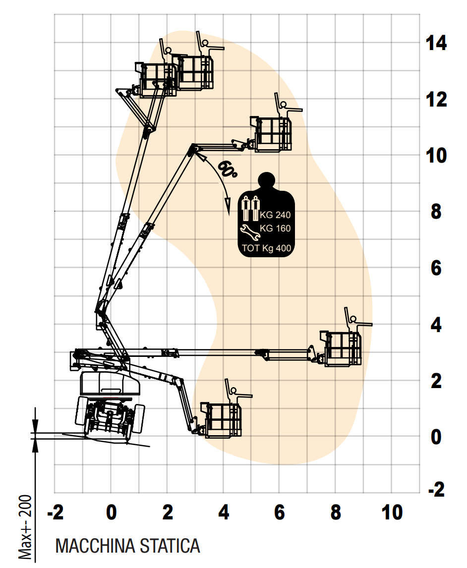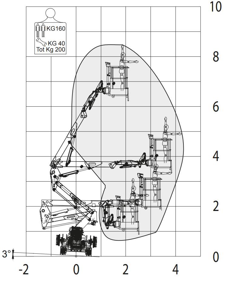 自動レベリングにより、最大200mmの傾きで操作出来るため、常に水平な作業位置を維持できます。